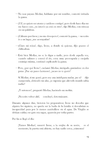 —¡Cálmate por favor, y no me desesperes!, contestó la gansa, —necesito