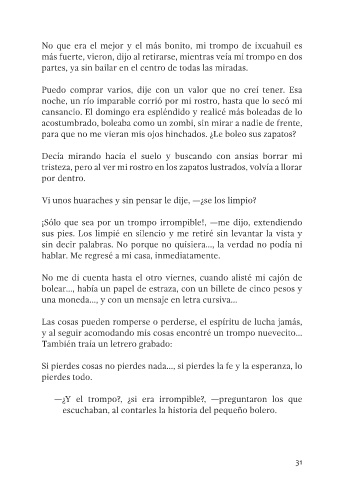tristeza, pero al ver mi rostro en los zapatos lustrados, volvía a llorar