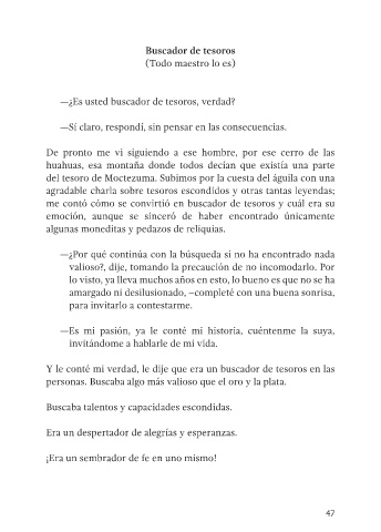 Y le conté mi verdad, le dije que era un buscador de tesoros en las