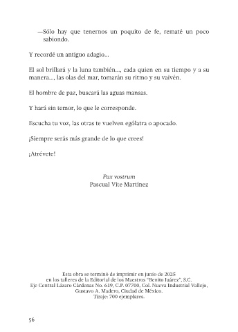—Sólo hay que tenernos un poquito de fe, rematé un poco