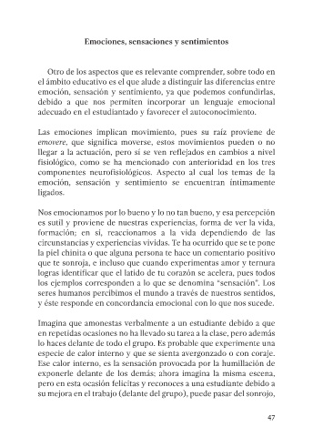 emoción, sensación y sentimiento, ya que podemos confundirlas,