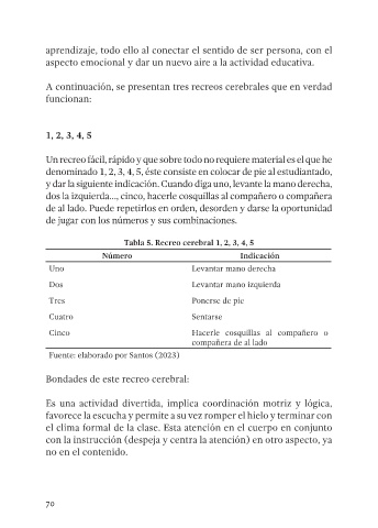 Tabla 5. Recreo cerebral 1, 2, 3, 4, 5