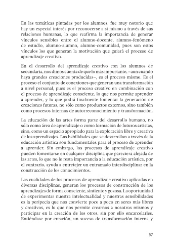 Page 59 - El arte en la educación y los procesos de aprendizaje creativo...