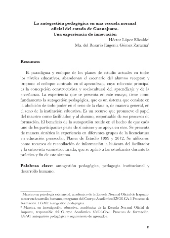 Palabras clave: autogestión pedagógica, pedagogía institucional y