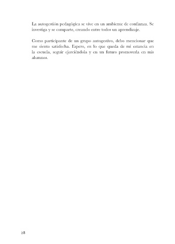 La autogestión pedagógica se vive en un ambiente de confianza. Se