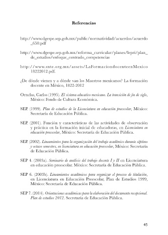 SEP. (1999). Plan de estudios de la Licenciatura en educación preescolar, México: