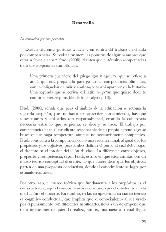 están a favor, a saber: Frade (2008), plantea que el término competencias