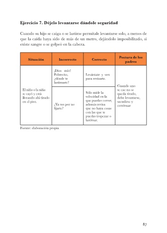 Cuando su hijo se caiga o se lastime permítale levantarse solo, a menos de