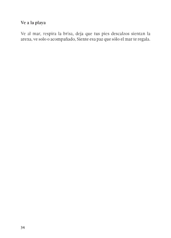 Ve a la playa Ve al mar, respira la brisa, deja que tus pies descalzos sientan la arena, ve solo o acompañado, Siente esa paz que sólo el mar te regala. 34