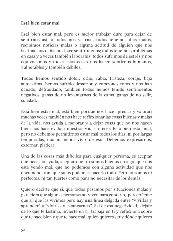 bien; nos hace evaluar nuestras vidas, crecer. Está bien estar mal,