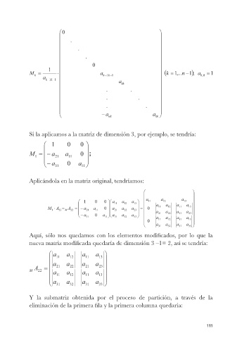 Y la submatriz obtenida por el proceso de partición, a través de la