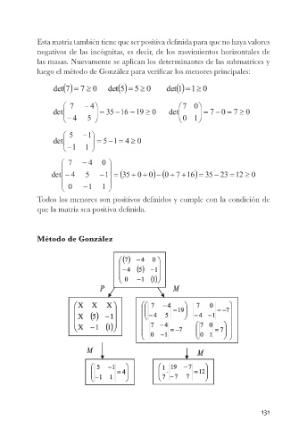 las masas. Nuevamente se aplican los determinantes de las submatrices y