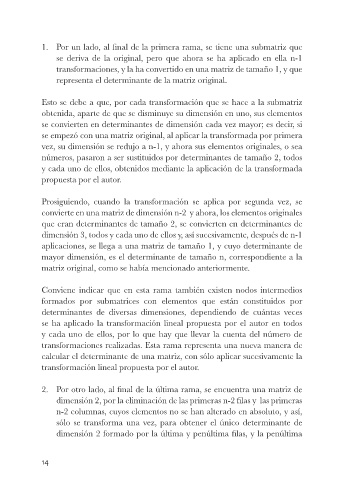 aplicaciones, se llega a una matriz de tamaño 1, y cuyo determinante de