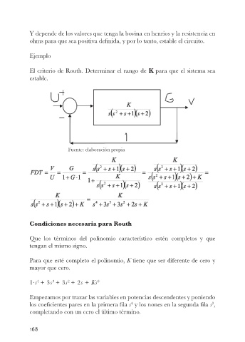 El criterio de Routh. Determinar el rango de K para que el sistema sea