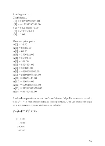 En donde se pueden observar los 5 coeficientes del polinomio característico