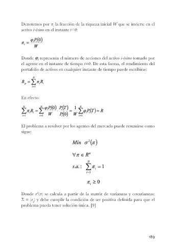 Donde representa el número de acciones del activo i-ésimo tomado por