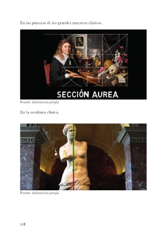 En las pinturas de los grandes maestros clásicos. Fuente: elaboración propia En la escultura clásica. Fuente: elaboración propia 218