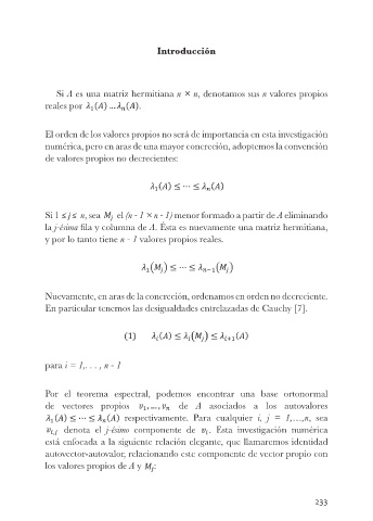 Si A es una matriz hermitiana n × n, denotamos sus n valores propios
