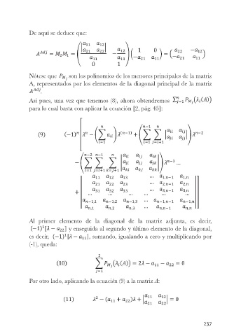 Por otro lado, aplicando la ecuación (9) a la matriz A: