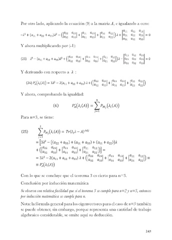 Por otro lado, aplicando la ecuación (9) a la matriz A, e igualando a cero: