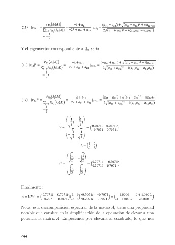 Y el eigenvector correspondiente a sería: