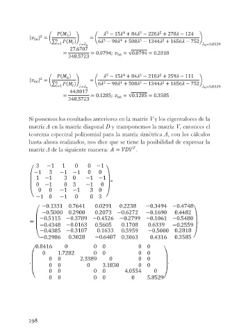 Si ponemos los resultados anteriores en la matriz V y los eigenvalores de la