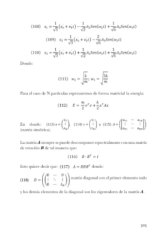Para el caso de N partículas expresaremos de forma matricial la energía: