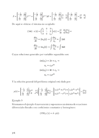 Si tomamos el ejemplo 4 nuevamente y suponemos un sistema de ecuaciones diferenciales lineales con