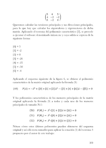 matriz. Aplicando el teorema del polinomio característico [2], se procede