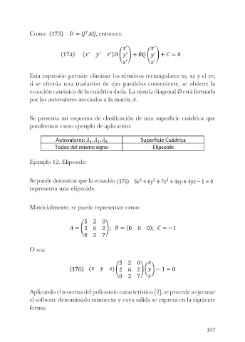 ecuación canónica de la cuádrica dada. La matriz diagonal D está formada