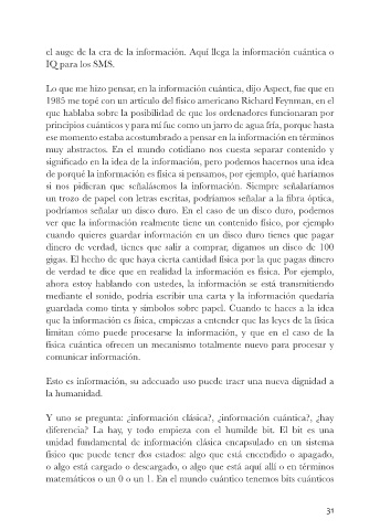 Lo que me hizo pensar, en la información cuántica, dijo Aspect, fue que en