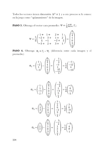 Todos los vectores tienen dimensión y a este proceso se le conoce en la jerga como “aplanamiento” de la imagen. PASO 3. Obtenga el vector cara promedio: ; PASO 4. Obtenga (diferencia entre cada imagen y el promedio): 334