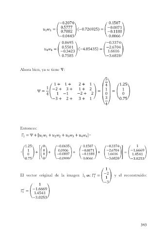 Ahora bien, ya se tiene Ψ: Entonces: El vector original de la imagen y el reconstruído: 343
