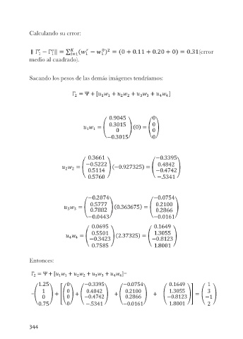 Calculando su error: (error medio al cuadrado). Sacando los pesos de las demás imágenes tendríamos: Entonces: 344