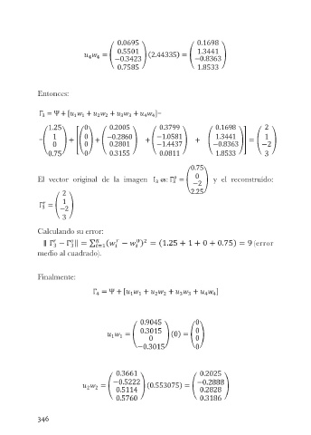 Entonces: El vector original de la imagen y el reconstruído: Calculando su error: (error medio al cuadrado). Finalmente: 346