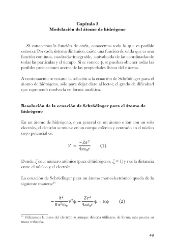 átomo de hidrógeno, sólo para dejar claro al lector, el grado de dificultad