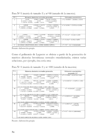 Para N=3 (matriz de tamaño 3) y n=100 (tamaño de la muestra).