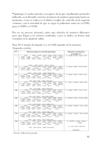 Para N=4 (matriz de tamaño 4) y n=2300 (tamaño de la muestra).