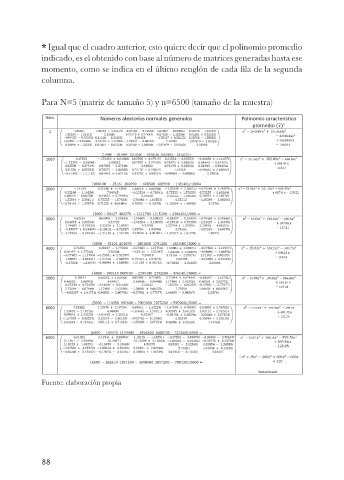 Para N=5 (matriz de tamaño 5) y n=6500 (tamaño de la muestra)