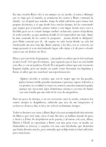 Marco, por otro lado, le pregunta, –¿tus padres ya saben que te irás mañana