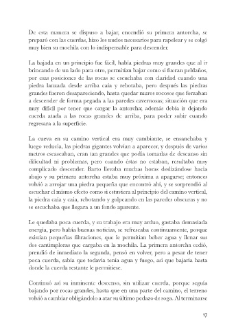 Continuó así su inminente descenso, sin utilizar cuerda, porque seguía