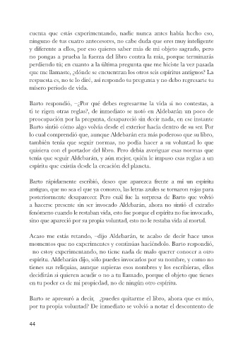 Barto rápidamente escribió, deseo que aparezca frente a mí un espíritu