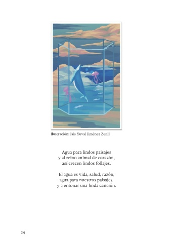 Ilustración: Isis Yuval Jiménez Zenil Agua para lindos paisajes y al reino animal de corazón, así crecen lindos follajes. El agua es vida, salud, razón, agua para nuestros paisajes, y a entonar una linda canción. 24