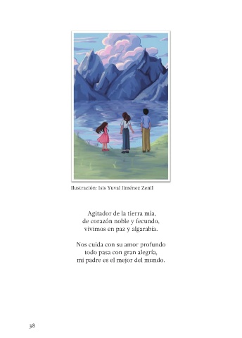 Ilustración: Isis Yuval Jiménez Zenil Agitador de la tierra mía, de corazón noble y fecundo, vivimos en paz y algarabía. Nos cuida con su amor profundo todo pasa con gran alegría, mi padre es el mejor del mundo. 38