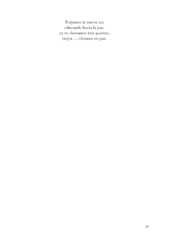Forjemos la nueva era educando hacia la paz, ya no deseamos más guerras, mejor…, vivamos en paz. 21