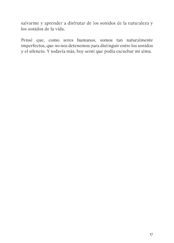 salvarme y aprender a disfrutar de los sonidos de la naturaleza y
