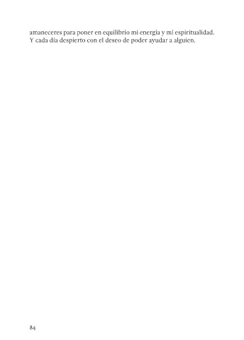 amaneceres para poner en equilibrio mi energía y mi espiritualidad. Y cada día despierto con el deseo de poder ayudar a alguien. 84