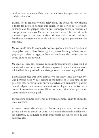 mi fealdad, la angustia de ser vista, pero no creció mi seguridad.