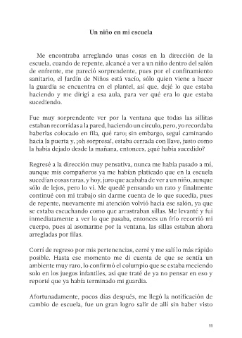 escuela, cuando de repente, alcancé a ver a un niño dentro del salón