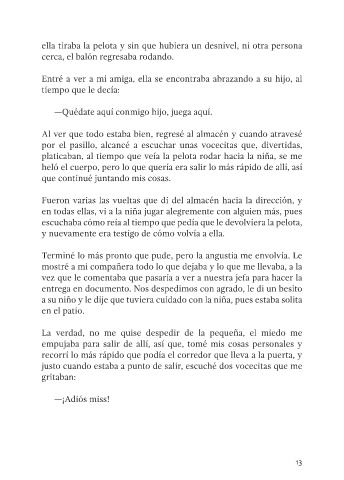 platicaban, al tiempo que veía la pelota rodar hacia la niña, se me